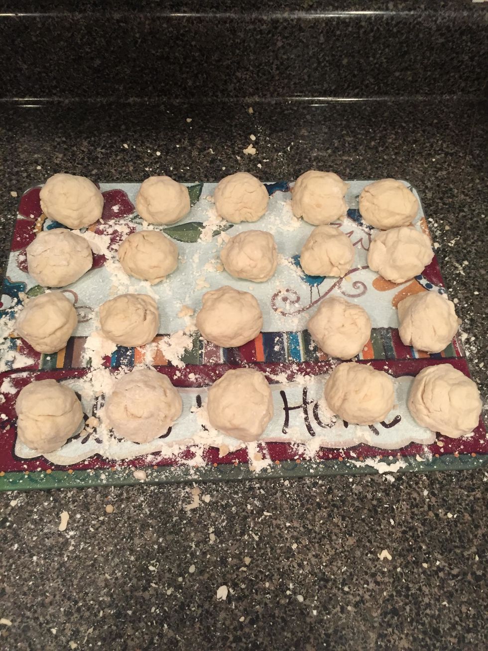 begin separating the dough and making it into 20 small balls