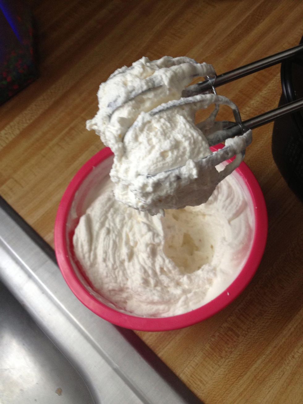 Add all ingredients in a small bowlBeat together for until peaks start to formSpoon out of bowl or use a pipping bag to decor your dessert.