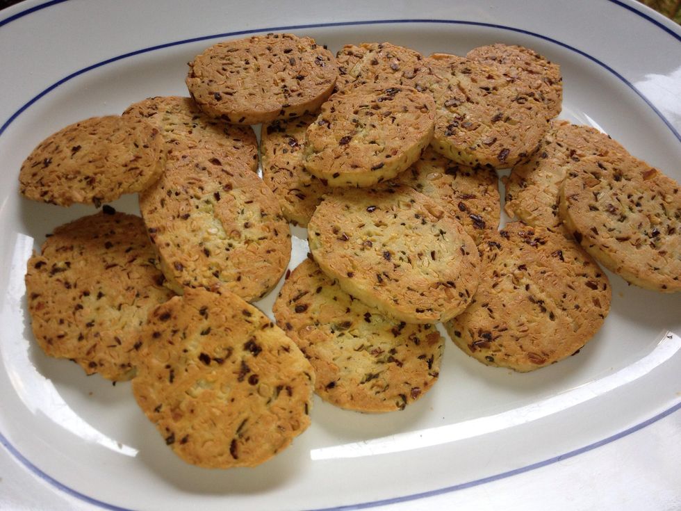 Slice the log into 5mm coins and place on cookie sheet. You can lined onto parchment paper though. Bake for 10 minutes or until golden brown on 325F or 160C.