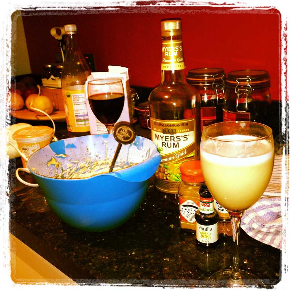 Batter up! Making this Christmassy little number is a 2 part process. First, make lots of spiced batter (so you scan make lots of tasty beverages) So gather your ingredients, except rum and cream!