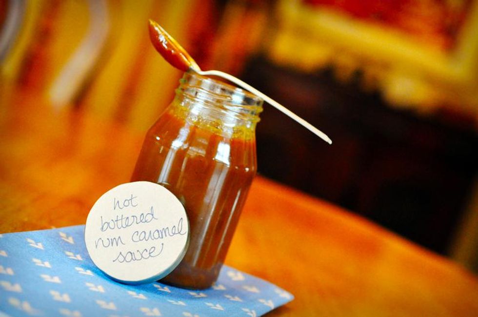 This delicious caramel sauce is infused with Hot Buttered Rum tea and finished with just a hint of spiced dark rum. It's perfect on shortbread, or just off the spoon :)