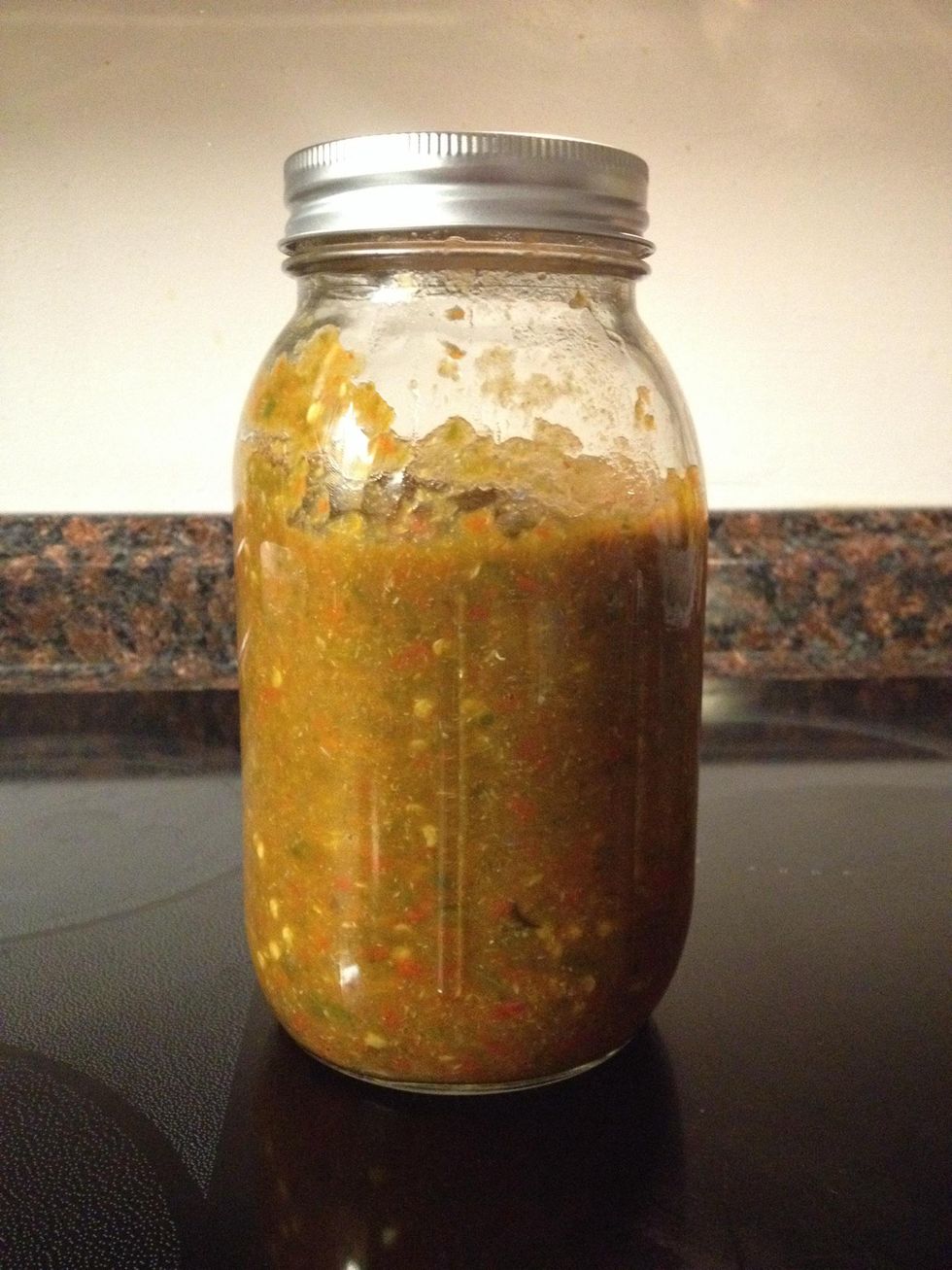 Wash the peppersRemove the core and wash againPeel the garlicIn a pot, cook the peppers garlic and sugar with 2 cups of sugarAdd vinegarPuree the mixtureUntil smoothStore in the mason jarEnjoy!