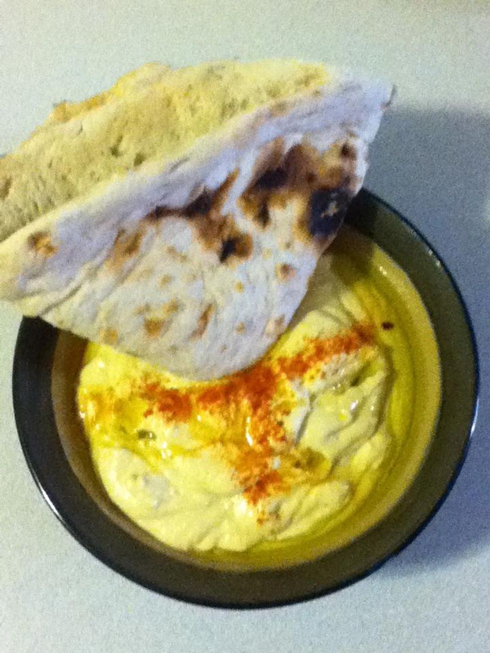 Eat it with pita bread or whatever you like. My local store has this killer fresh-baked Iraqi flatbread. You can also bulk this out with some veggies if you want: just cube a tomato and a cucumber!