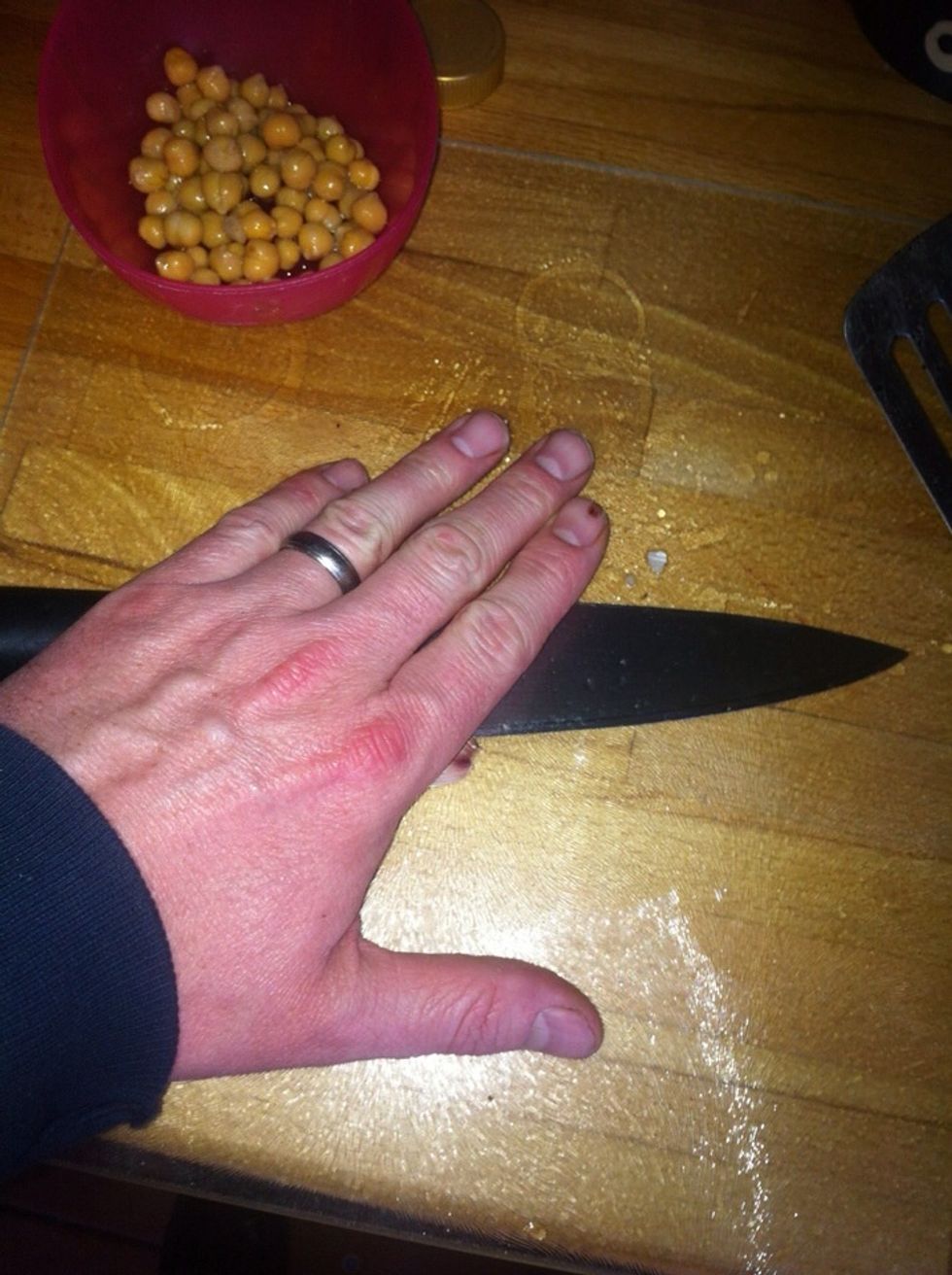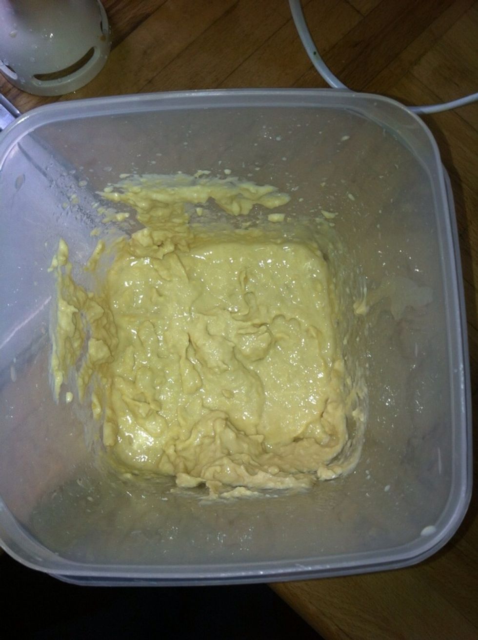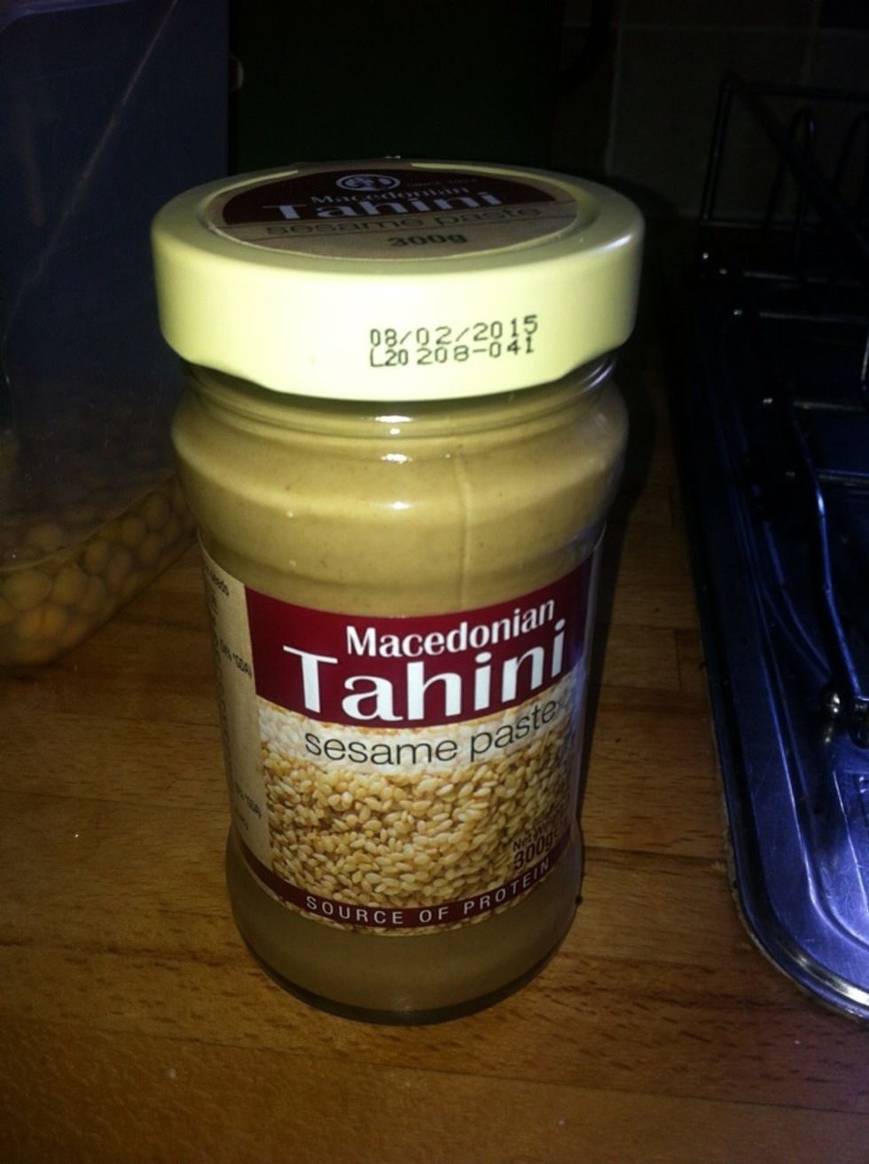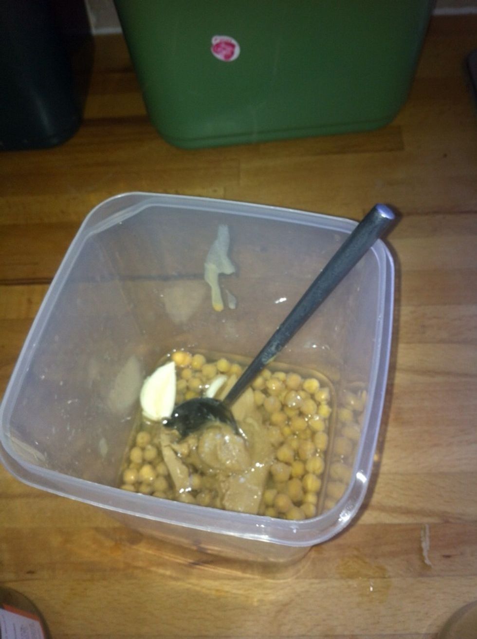 Peal a clove of garlic and add this to the chickpeas. Use less garlic if you don't want your breath to smell:)