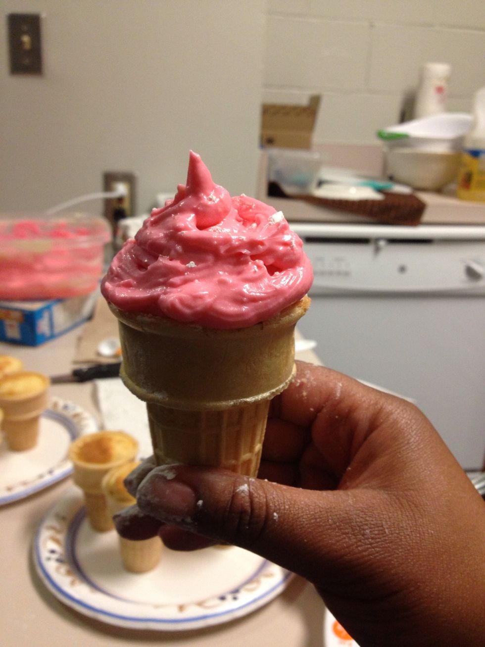 Shape frosting into an ice cream shape and add toppings of your desire...voila!