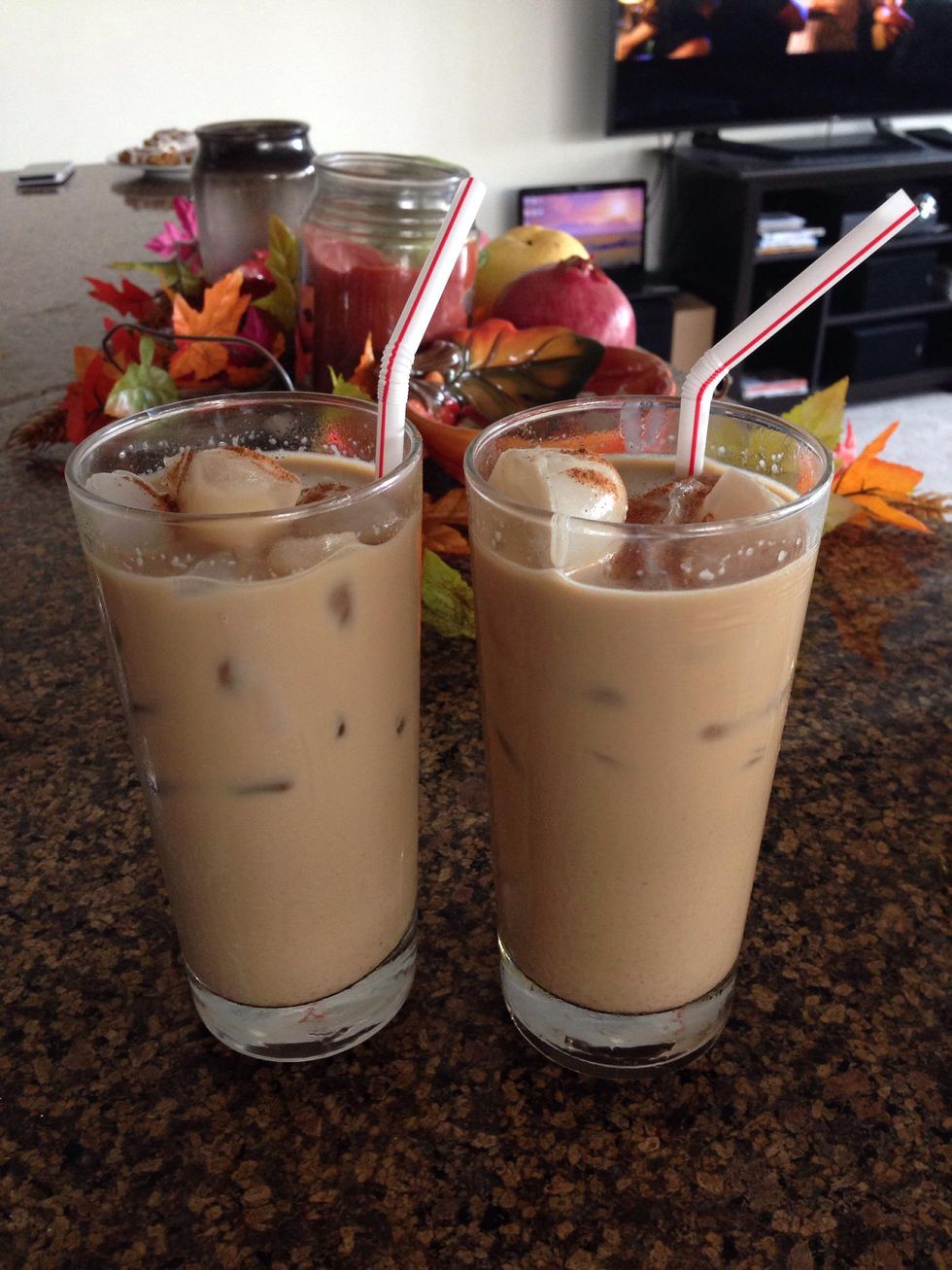 Brew up a cup of coffee. Make sure you use extra (double) coffee to the water because the melted ice will dilute the flavor. I added some cinnamon to my coffee, you can add pumpkin spice or nutmeg!