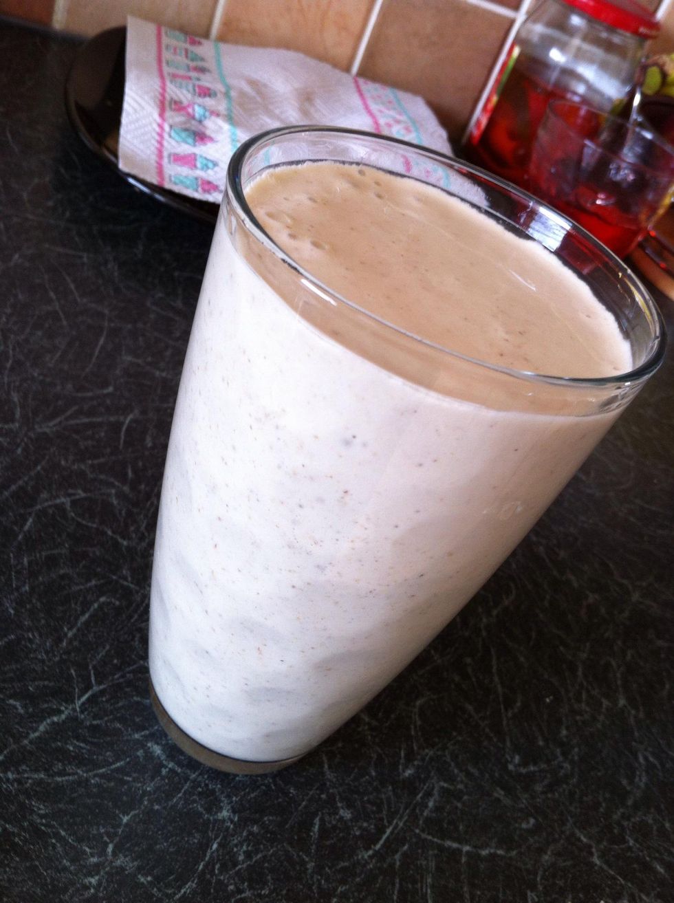 Add about 3 table spoonsGrind for dustAdd bananaAbout 400 ml of cold water2 cups (approximately 50g) of diet whey proteinMixed for 15 sec and enjoy !