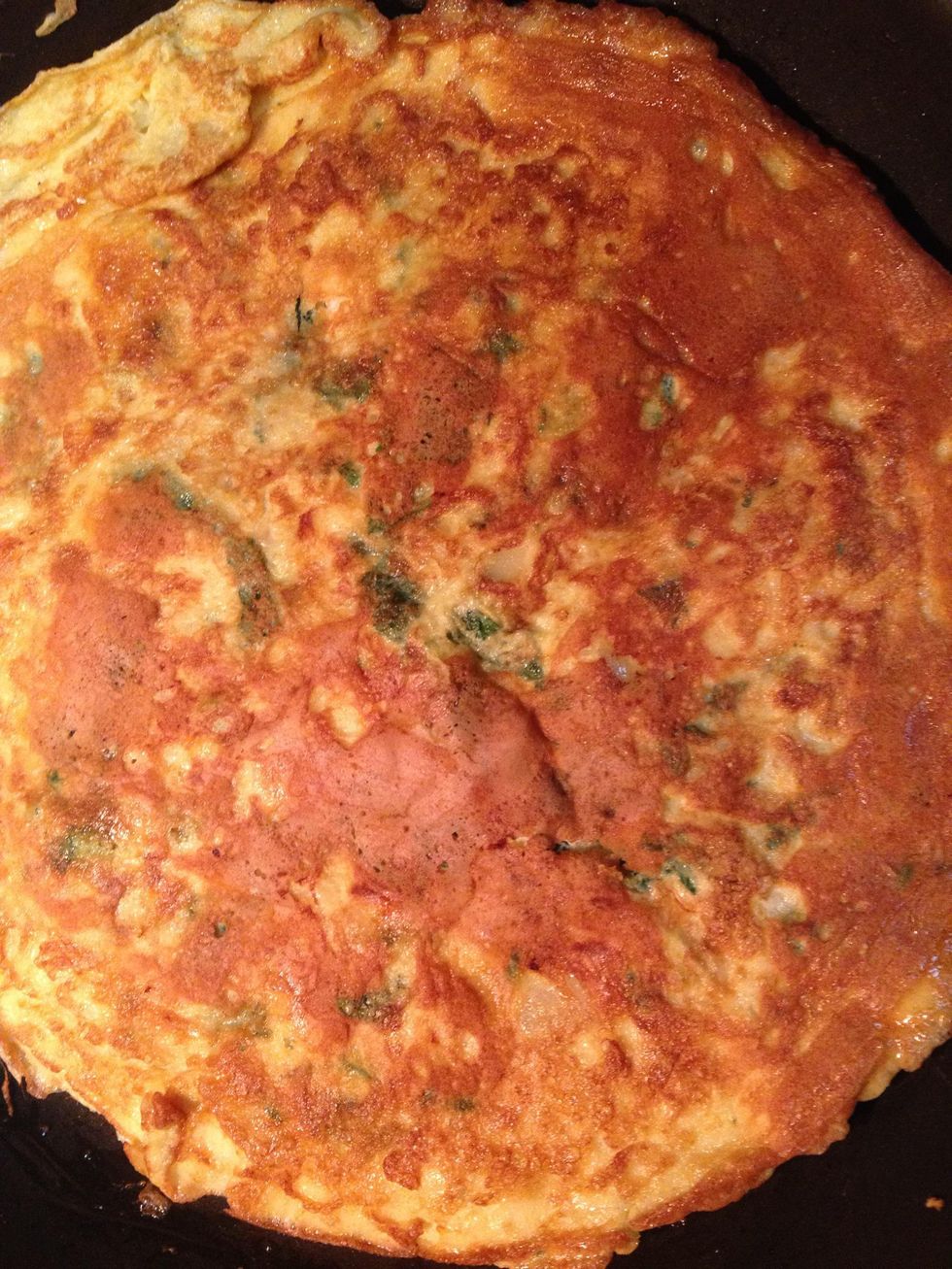 Drizzle the pan with some vegetable oil pour your omelette. Cook till well done on both the sides.