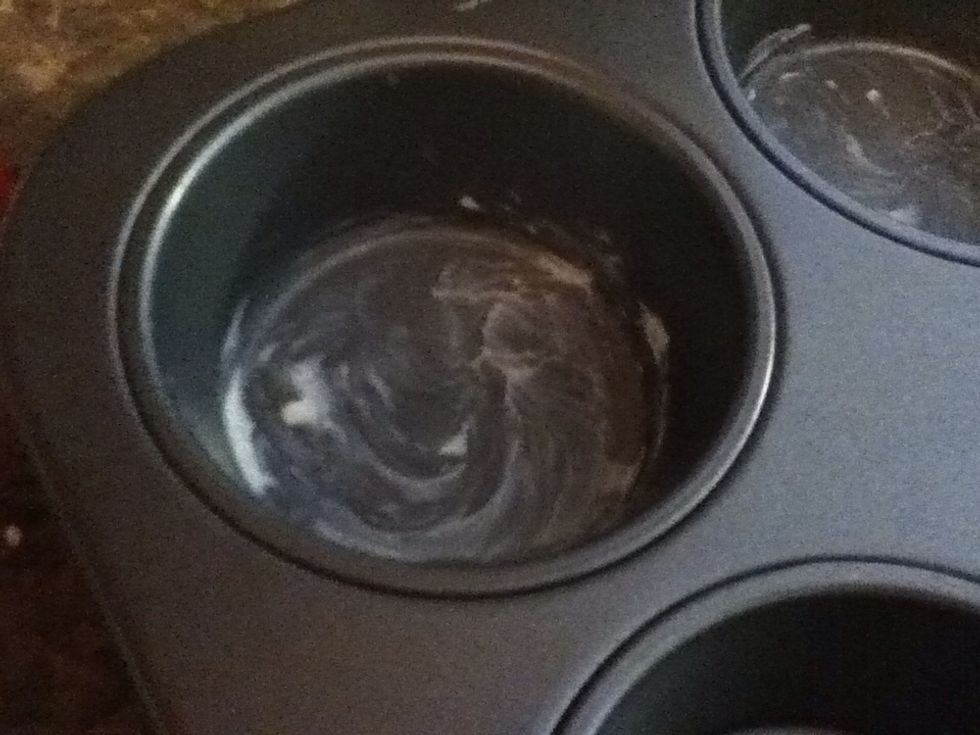 Preheat the oven to 350 and grease the bottoms of three cups of a jumbo muffin pan.