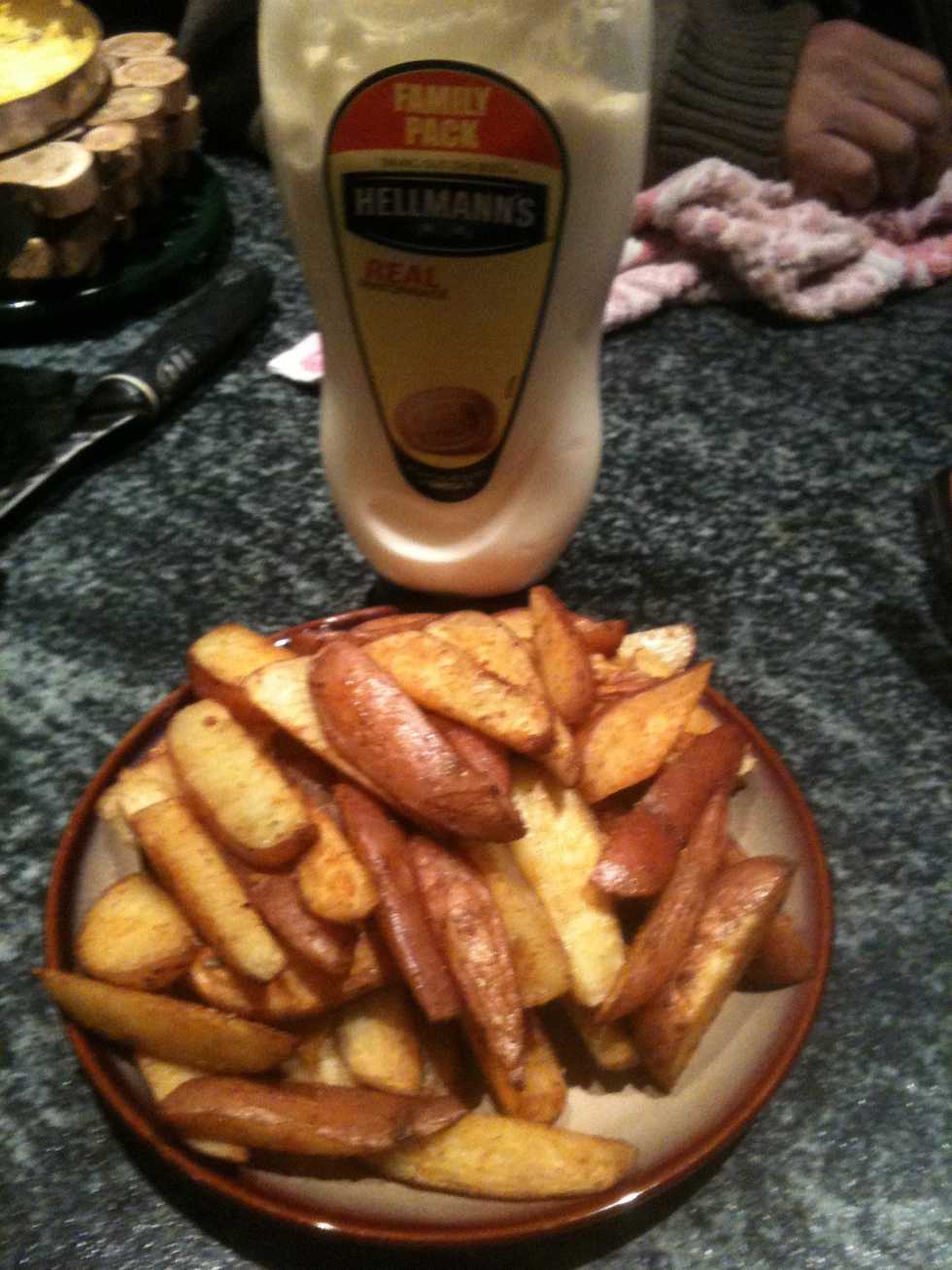 Depending on the amount of potatoes put some olive oil into a mixing bowl- I used 3tbs of oil for aprox 60g of potatoes