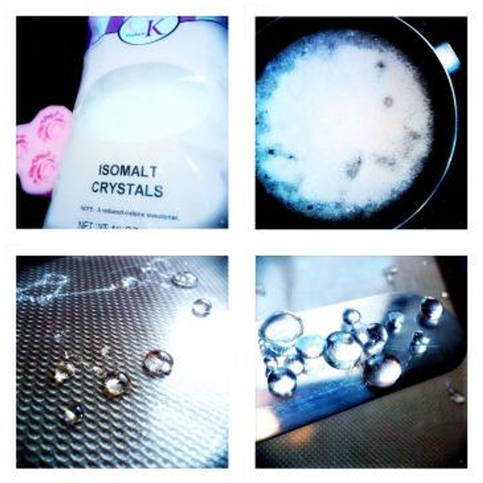 Pour the isomalt in a non-stick pan. Place on stove on medium high heat. WATCH CAREFULLY! The isomalt will start to turn to liquid form