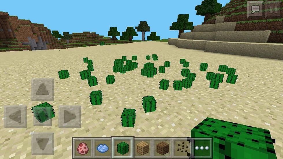 Find a sandy areaPut one cactus downAnd then make a tall single tower of cactus'sThen brake the bottom one then...