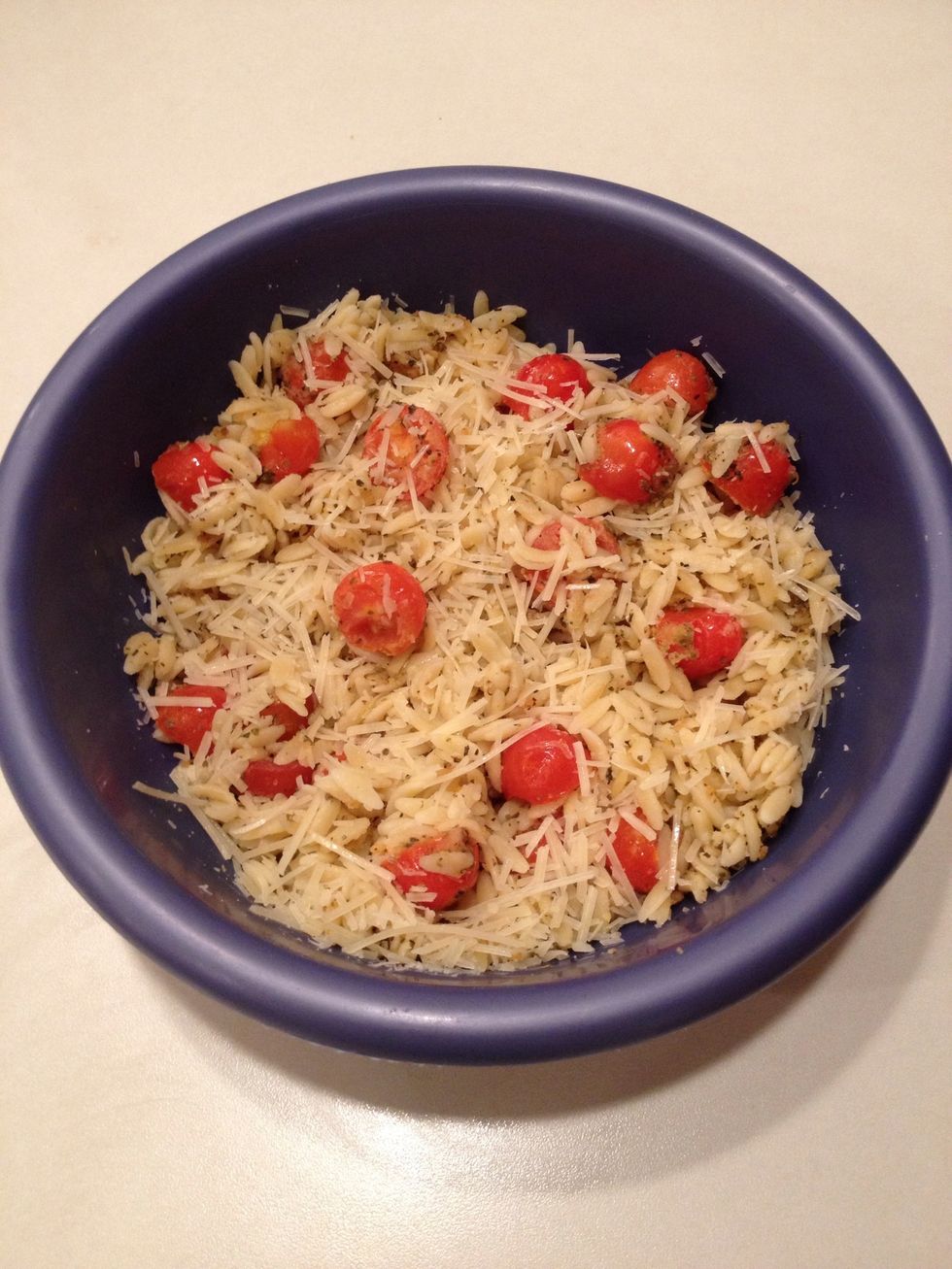 Cook orzo according to package directions. I used about 1/3 of a small box. Drain water and set aside.