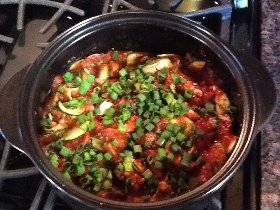 Stir in marinara sauce, then sprinkle on the diced green onions.