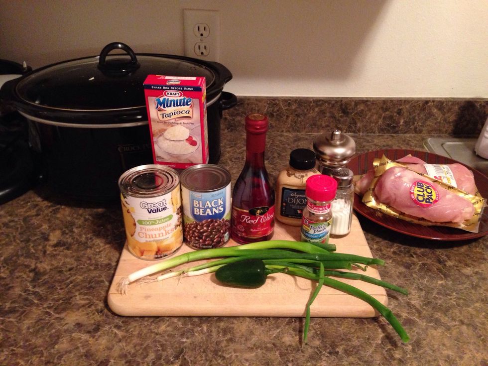 Set the juice aside for later and dump the pineapple chunks into the crock pot.