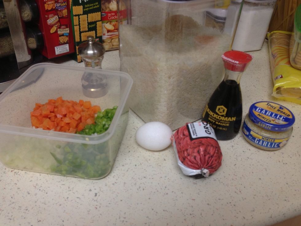 Put the 2 cups of rice and the 3 cups of water and a dash of salt in a pot and bring it to a boil, then turn it down to LO and cook for 20 min