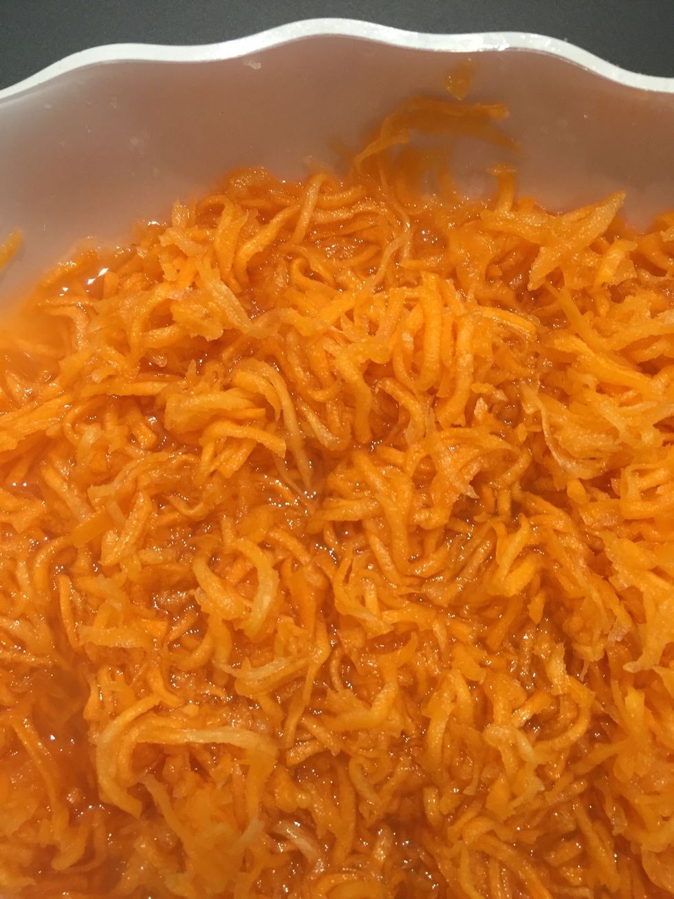 Grate carrots, add the sugar and let stand until sugar had melted and the carrots has rendered its juice