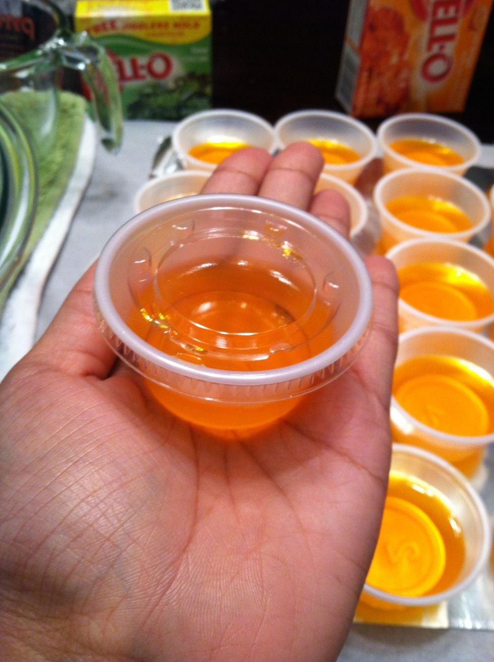 Follow the directions on the jello box but substitute one of the cold cups of water for VODKA! That's for the 6oz box of jello. For the 3 oz boxes you will only want to use 1/2 cup vodka.