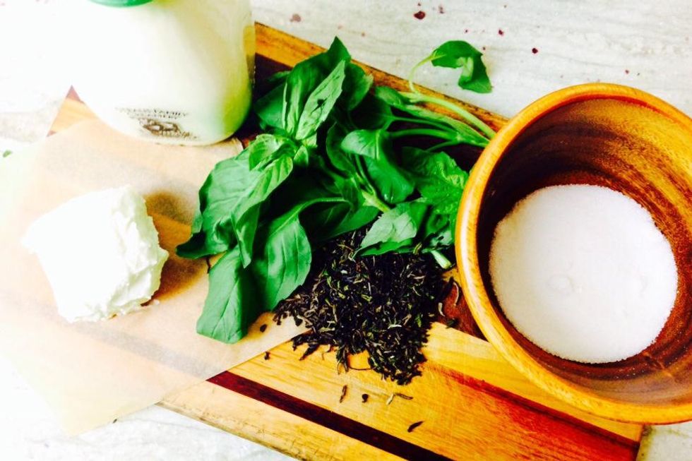 Et, voila! Tangy goat cheese meets fresh basil, and finishes with just a hint of earthy black tea to round it out. Enjoy!