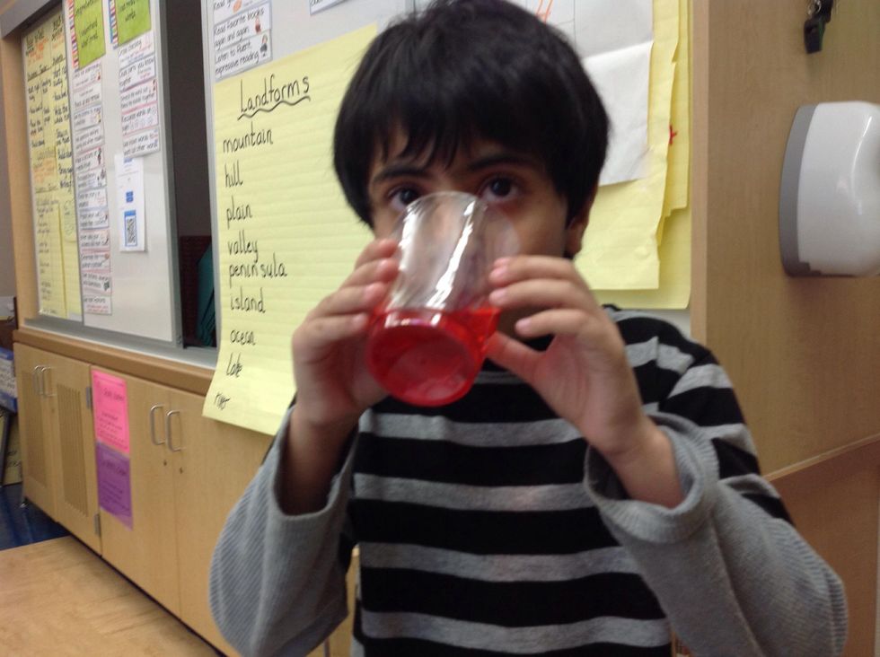 First you need these supplies: syrup, plate,spoon, paper towels, water bottle.Next put the syrup in the glass.Then put the water in the glass.Last mix the water and the syrup.Finally enjoy your drink.