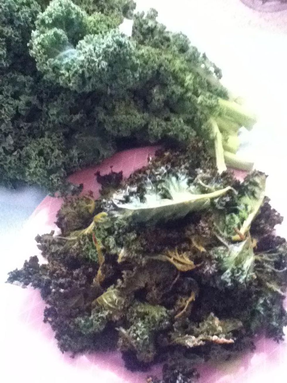 Bake at 325 until crispy and enjoy. The leaves crisp up like chips, full of flavor and nutrition. Kale is very high in beta carotene, vitamin K, lutein, and super rich on calcium and carotenoids.
