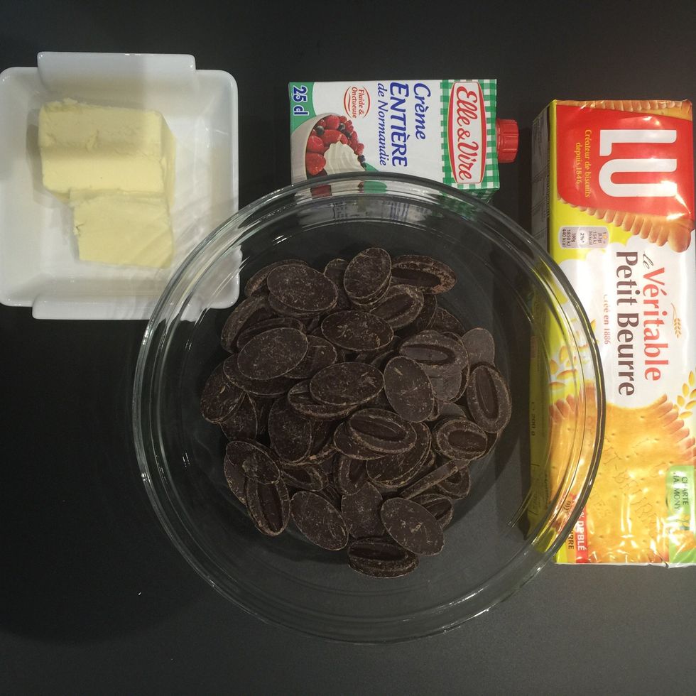 Melt chocolate and butter. I did in the microwave. You can do that in a double boiler as well. Leave to cool.