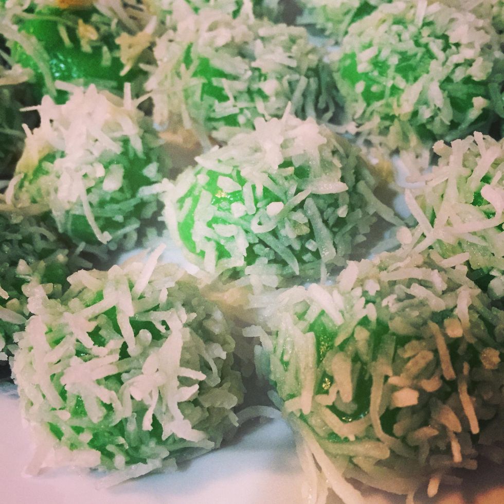 Dropped to the coconut and cover all sides of Klepon with coconut.