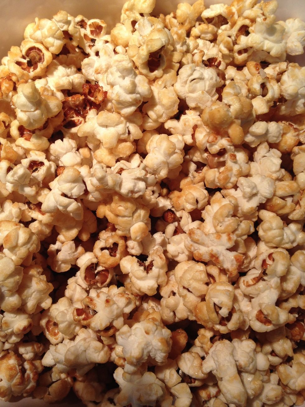 Dump the kettle corn into a large bowl. It tastes great both warm and cold!