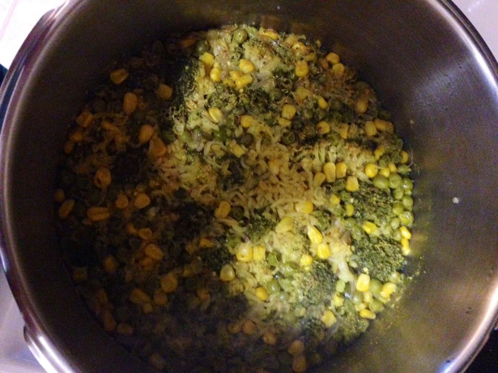 Dont wait for vegetables to cook, add rice, lentils, salt, pepper and water right away