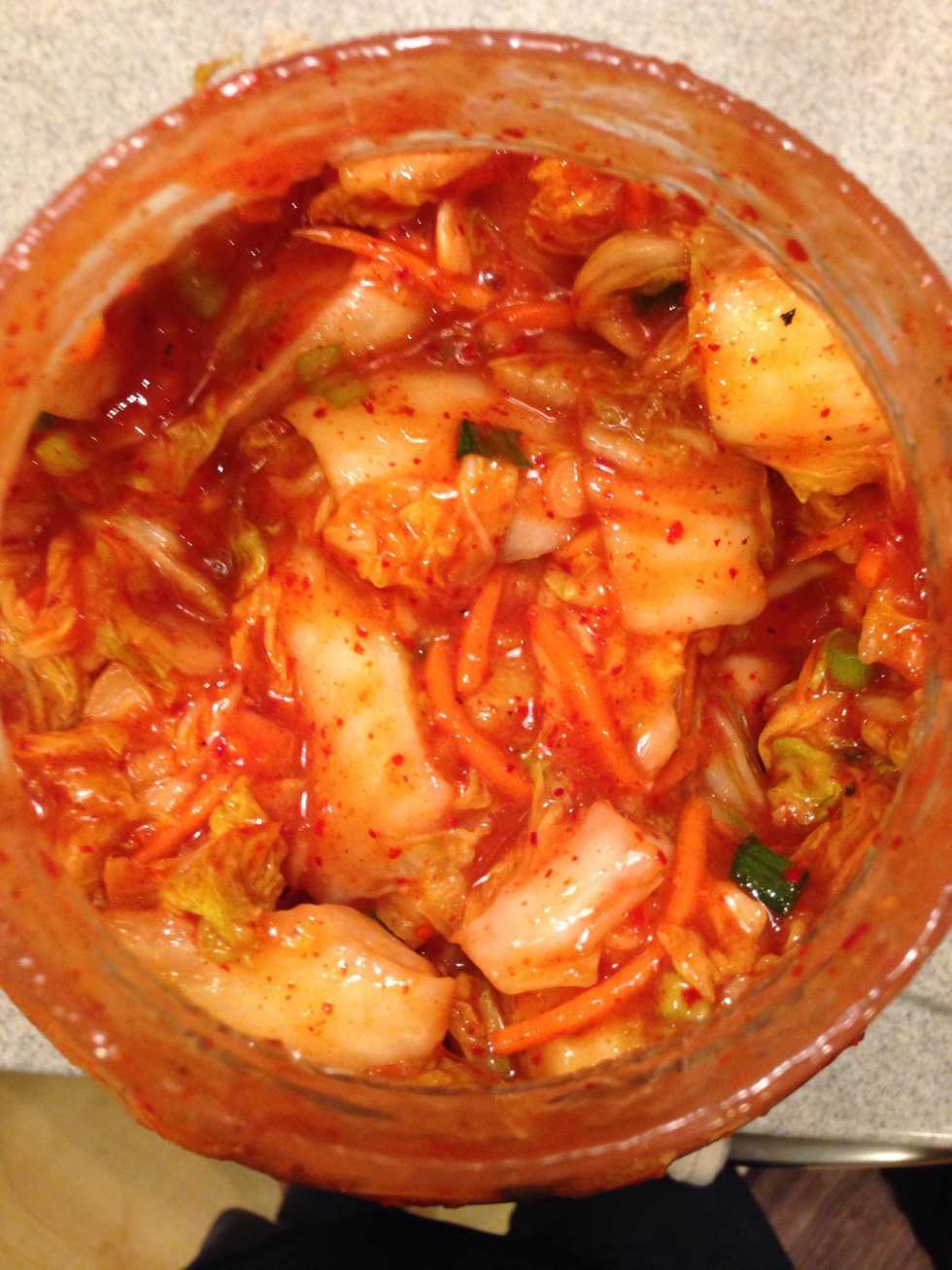 Put the kimchi in a jar with a tight lid...the smell is STRONG!