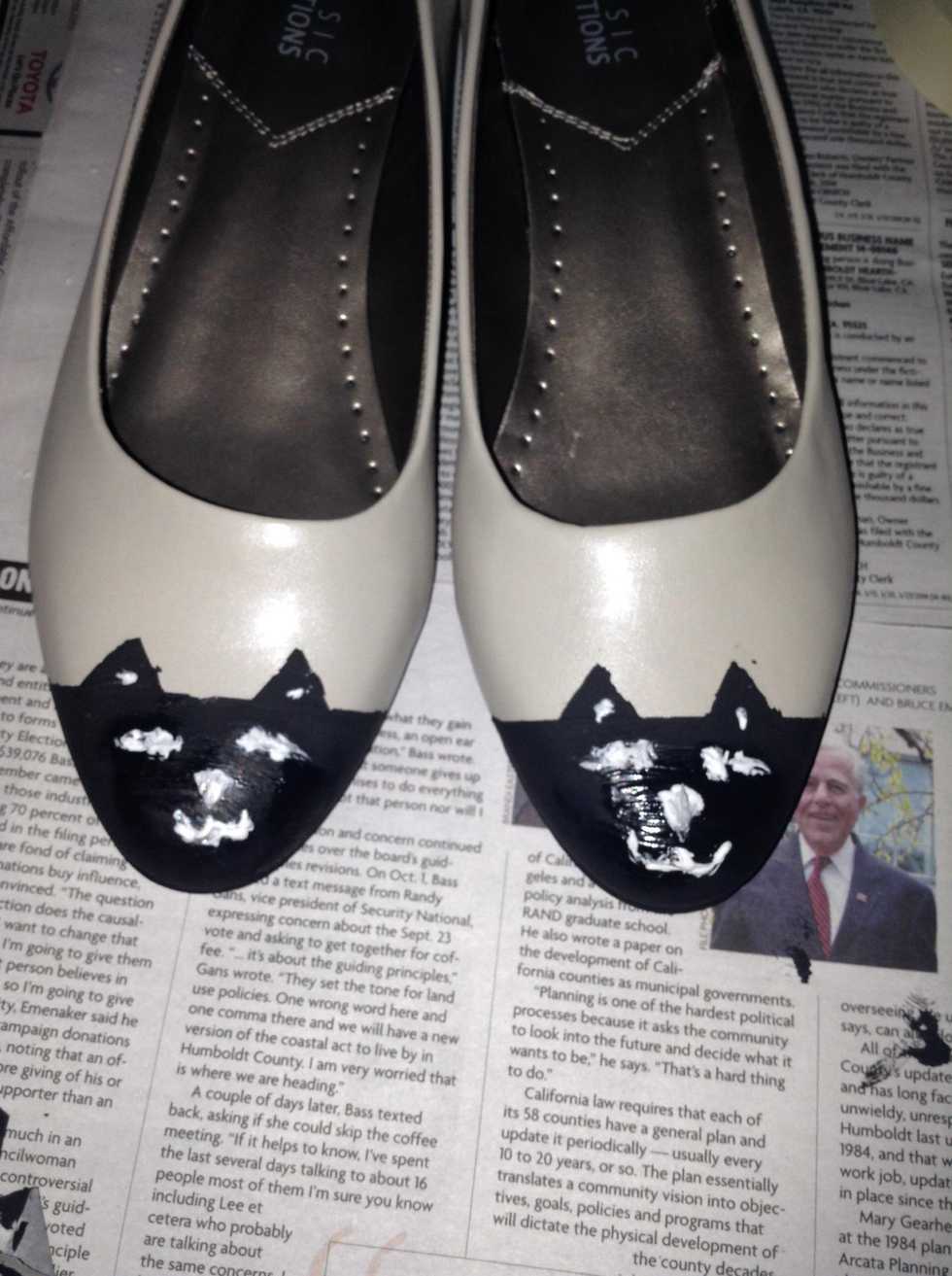 Tape your shoes where you want the kitty's face to be.