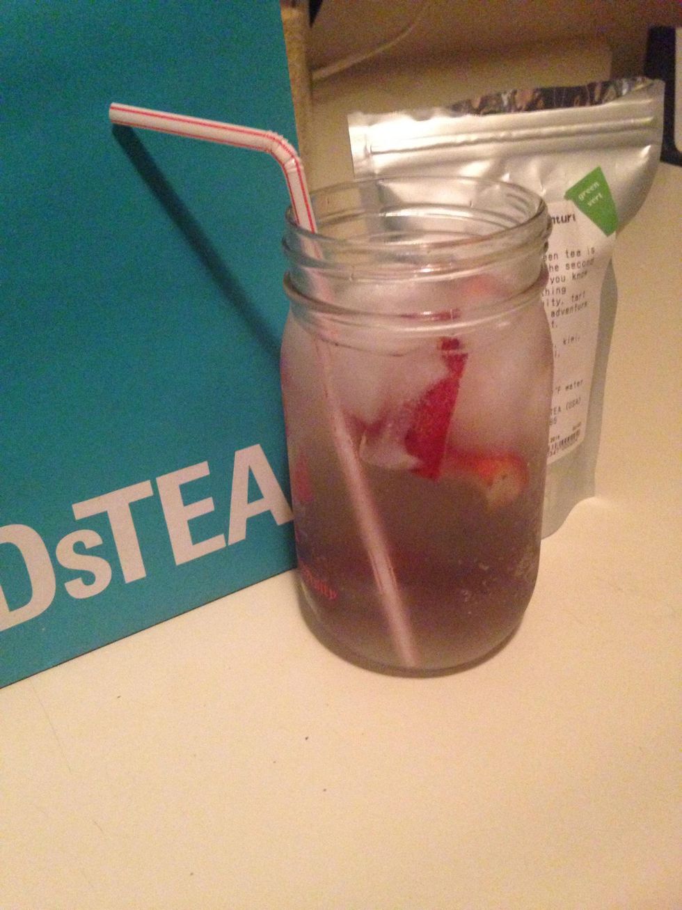 Brew two teaspoons Kiwi's Big Adventure Green Tea for 2-3 minutes in 180F water