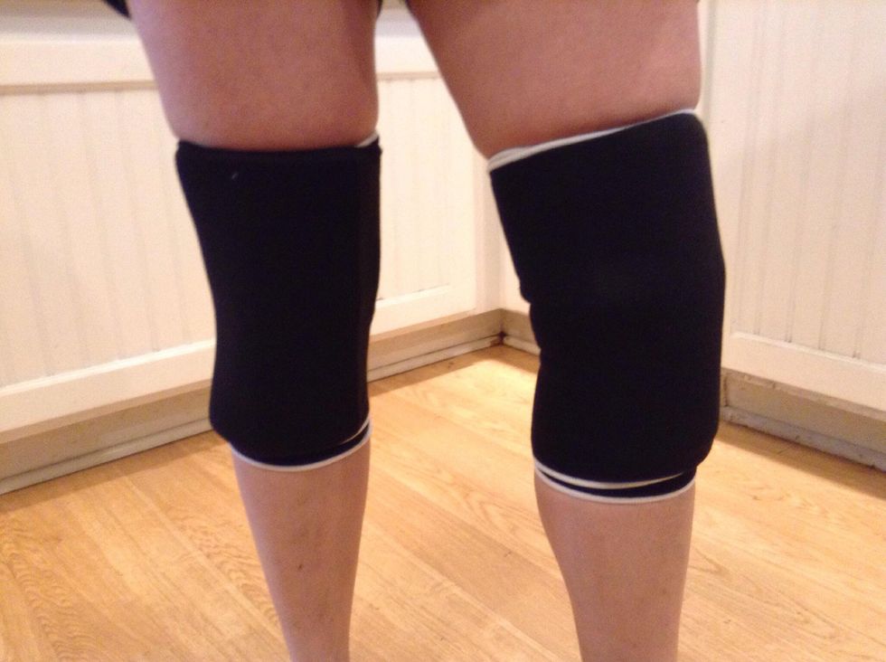 Note that the knee support is wider on one end. This end is wider for your thigh. The smaller end is for your calf.
