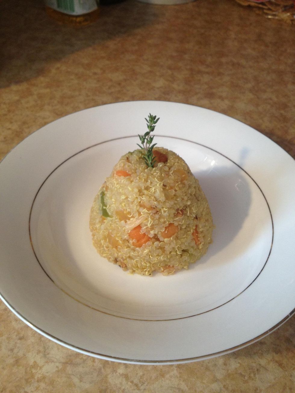 After 20 minutes of cooking quinoa it will be fluffy and ready for the veggies mix it's way in.