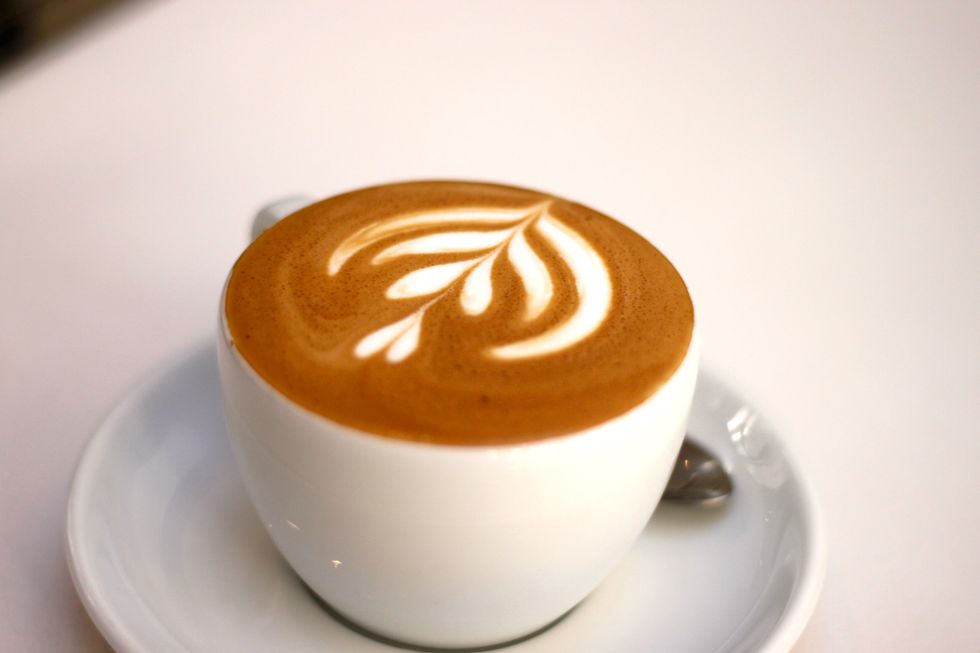 - Espresso pulled into a latte cup