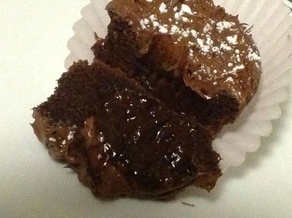 Place I/4 cup batter in each muffin cup spoon 1 tablespoon of the cold chocolate mixture on top of each cup but don't let it touch the edge of the cup.