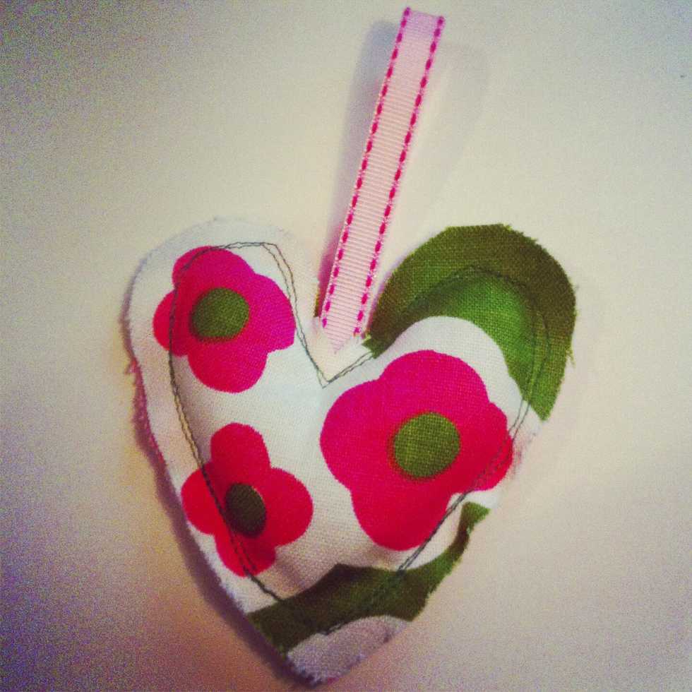 First start out with a pattern. I printed out this heart for my sachets. I've used cookie cutters for patterns as well. For this project I'm repurposing aprons I found at the thrift store.
