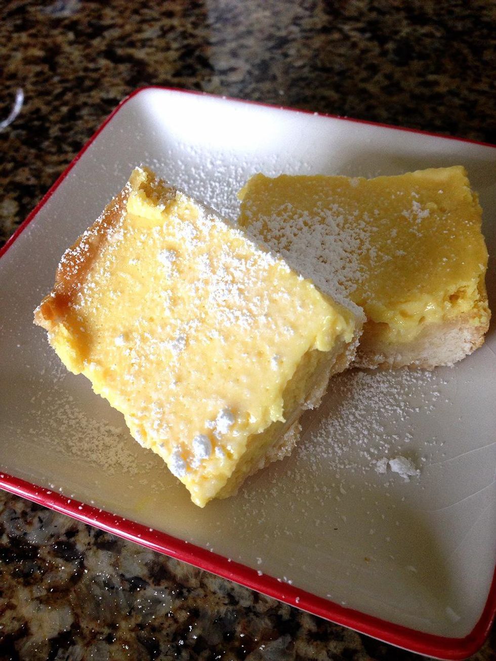 ....3 hours later...lemon bars got cut into individual pieces with an addition of a bit of powdered sugar on top....drool