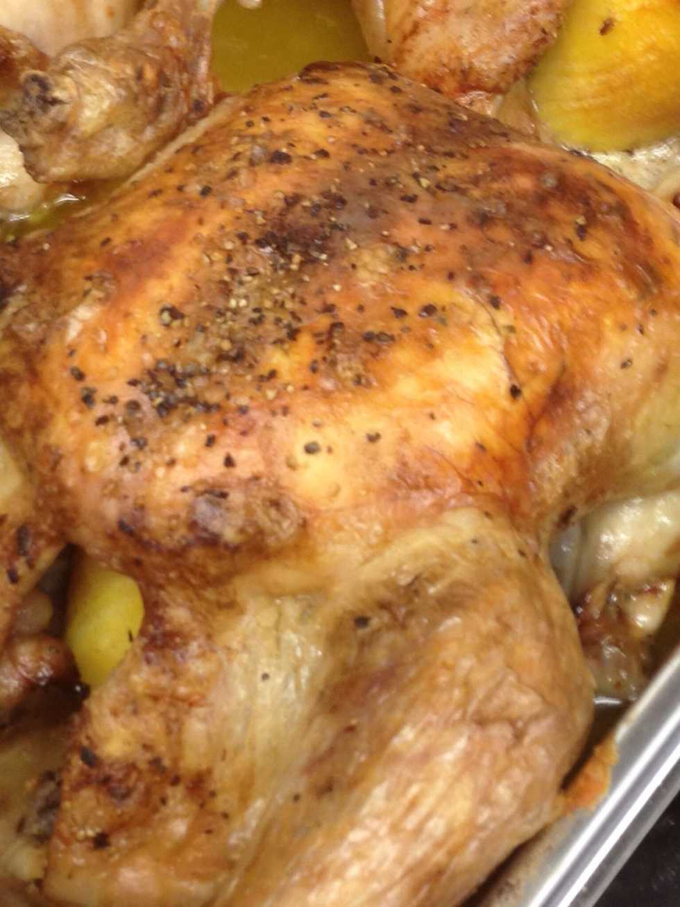 Put half the lemon in the chicken