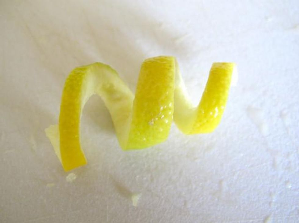 Cut lemon/ lime in halfafter the lemon is cut in half take one half and cut that in halfcut the peel of the lemon off and then slice into your prefered sizethen twist into a spring like shape