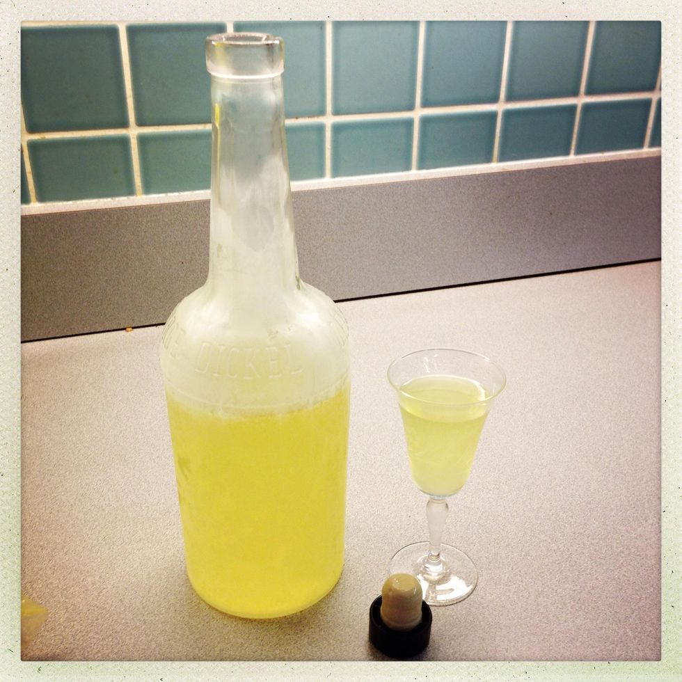After 2 or 3 weeks you have a beautiful sweet yellow liquor. Strain through a coffee filter or cheesecloth.