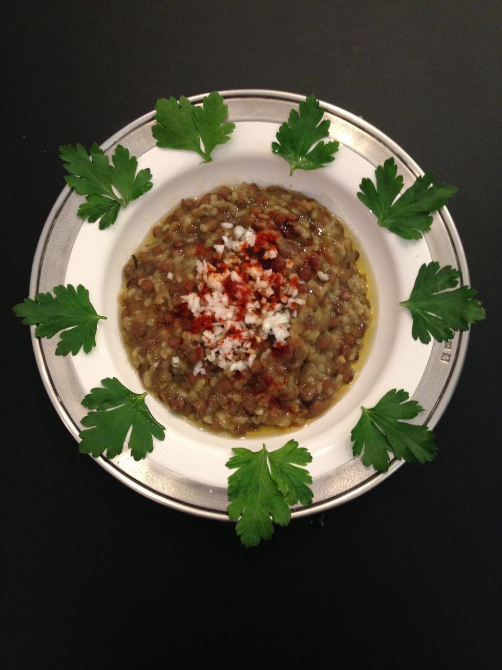 Originally it is mujadarah , a Lebanese popular recipe. Considered to b a complete protein. Association of lentils and rice. Also...Traditionally , onions are fried in olive oil and added to finish.