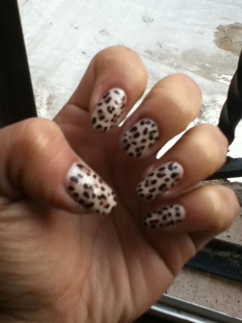 Use a light brown nail polish with the tip of the brush make some spot in your nails