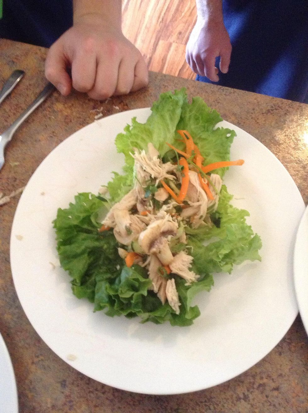 Add 2 tablespoons of mixture to each lettuce leaf.