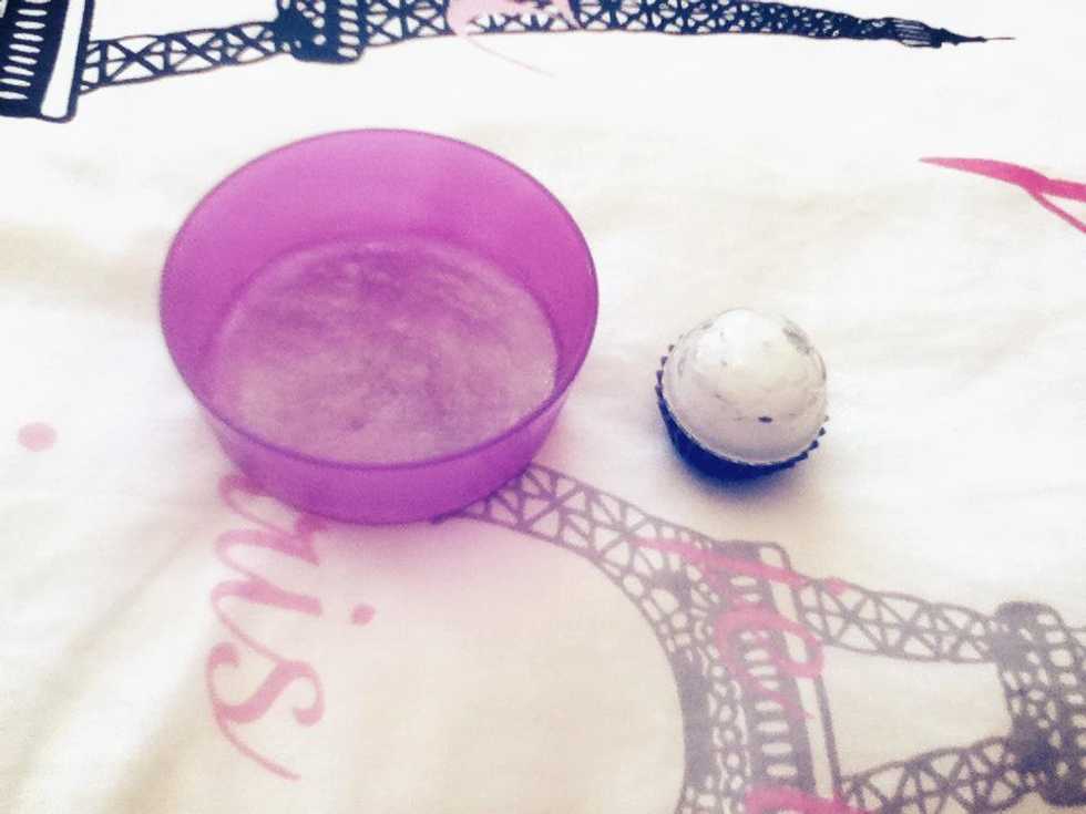 Then get your container with your lip balm in it and put glad wrap over it, then put it in the freezer overnight. And in the morning take it out, and take of the glad wrap.