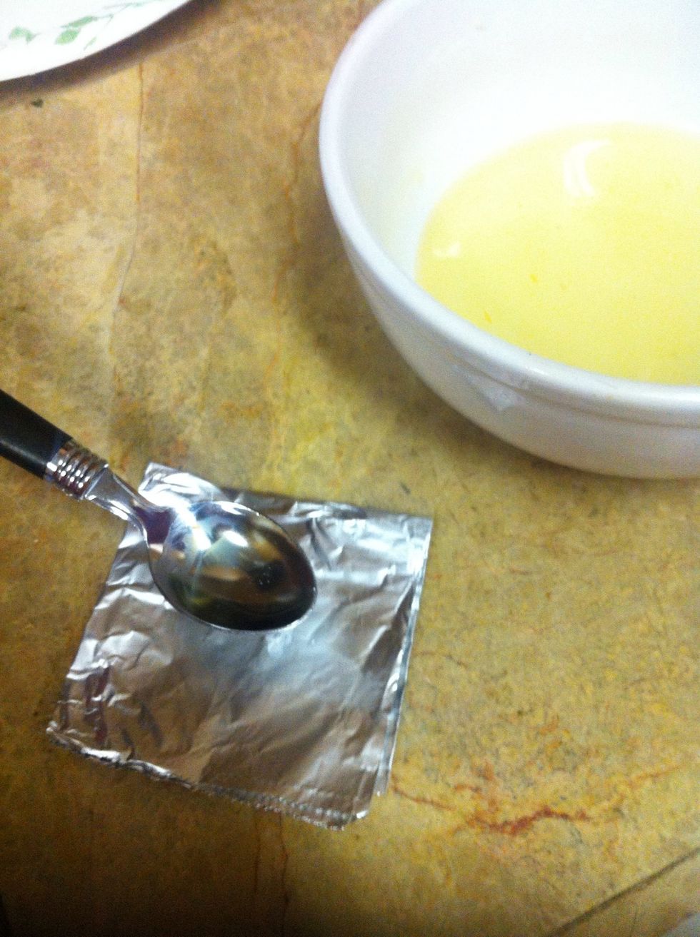 Transfer a little bit of the mixture to your square of aluminum foil....