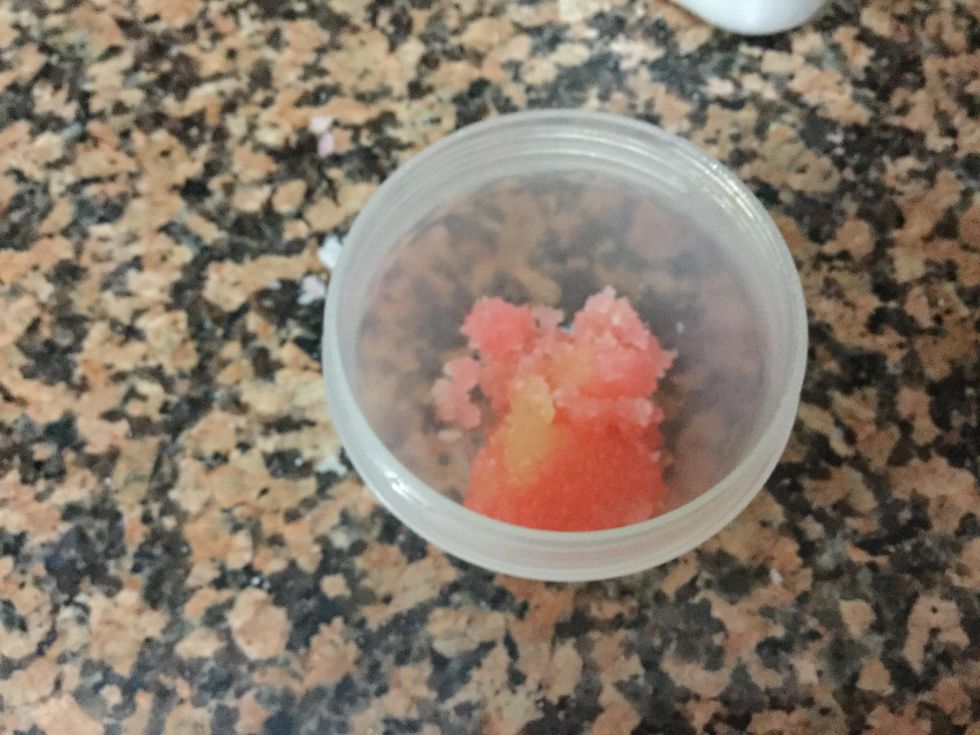 Collect ingredientsAdd as much sugar/scrub as wantedNext add a bit olive oilAnd a bit of flavoringMix wellWhen your done store in container and enjoy