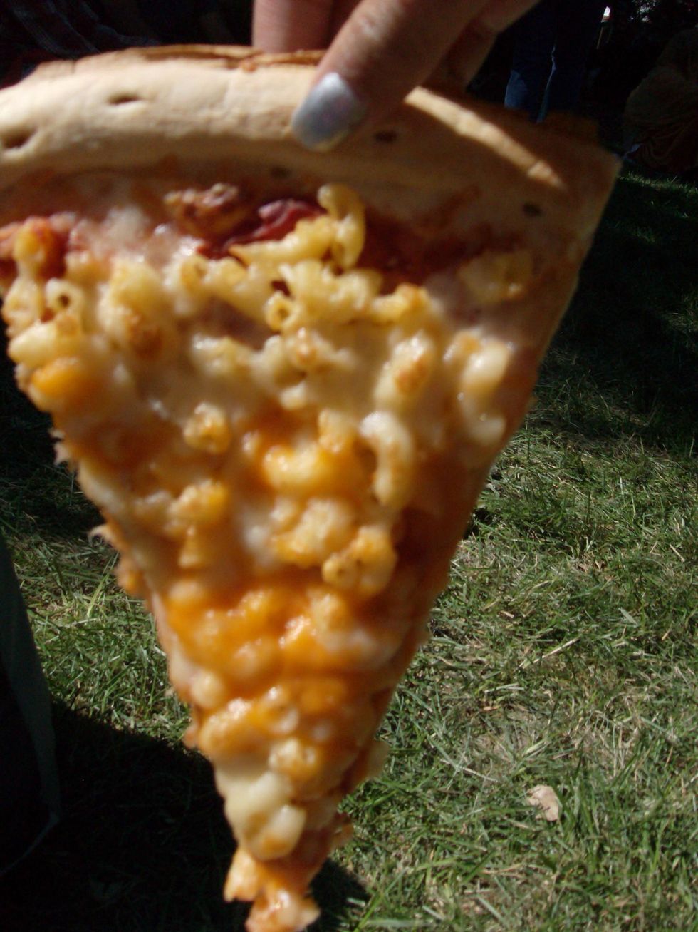 Cook the macaroniCook the cheese sauceMix cheese sauce with macaroniPut the sauce on the dough and put the macaroni on top and put into oven for 45 minCut a piece and enjoy outside