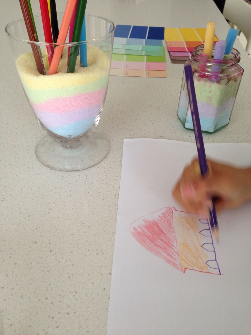 Stir the salt with chalk, any colour you prefer.