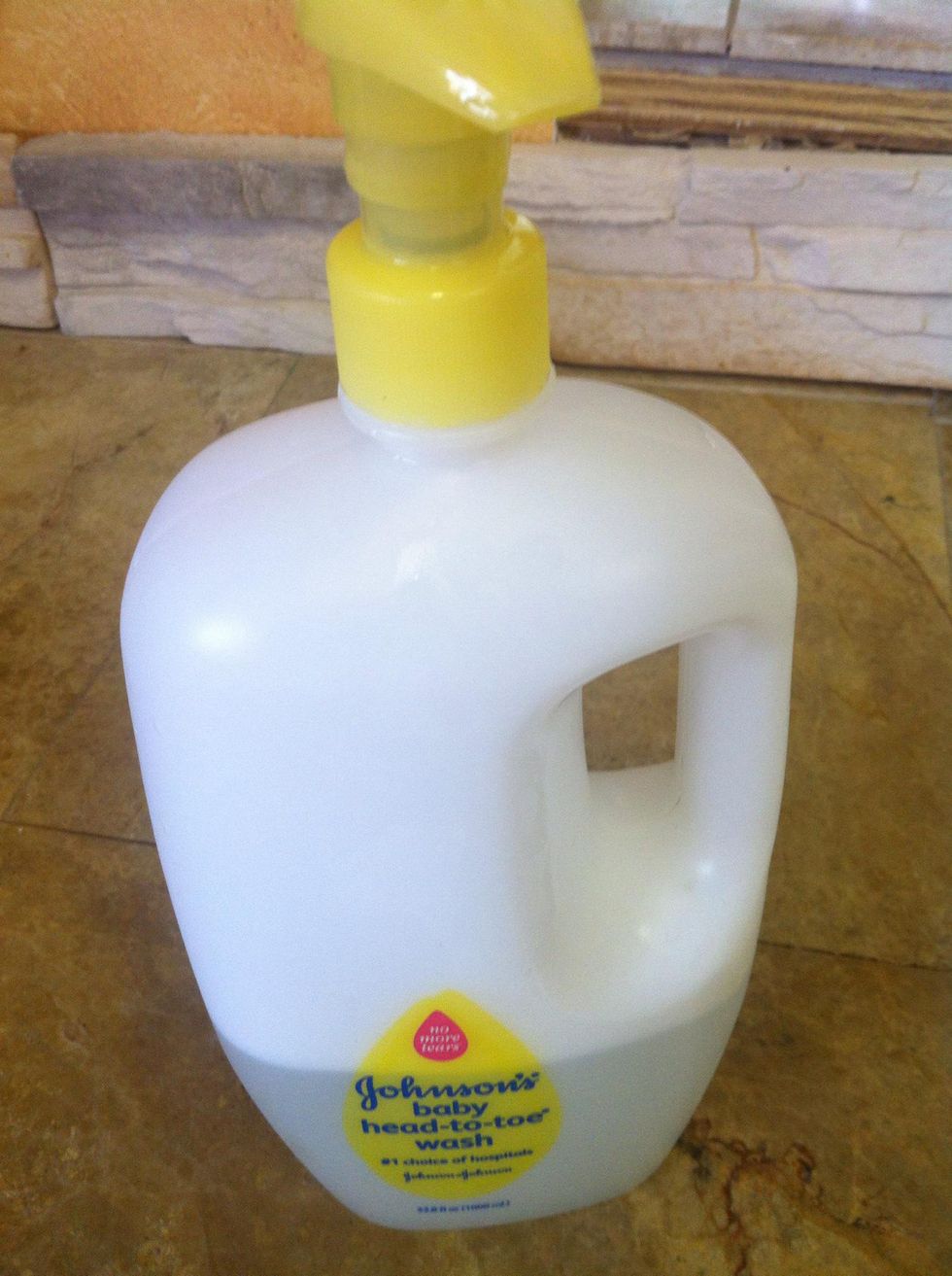 Gather ingredients... (measurements in supplies list ;))Add water....Add baby shampoo.....Add baby oil.....Stir :)You can really use any container.... I decided to use the baby shampoo bottle :)All done! :)
